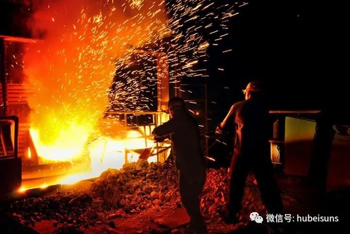 堅(jiān)守在四五十?dāng)z氏度的爐臺(tái)前的鋼廠各條生產(chǎn)線上的鋼鐵工人們,正揮汗如雨,把一包包鐵水冶煉成合格的鋼水。伴隨著陣陣的警鈴聲響,巨大的吊罐轟鳴著從頭頂快速滑過(guò),紅紅的火焰正從添料的爐口竄了出來(lái),熱氣逼人。轉(zhuǎn)爐口火光耀眼,轉(zhuǎn)爐內(nèi)熾熱的鋼水翻滾跳動(dòng),泛著灼人的光芒。