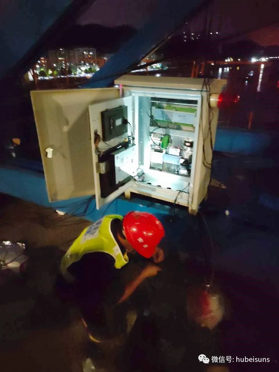 頭頂是白云飛流,腳下是伶仃洋海水卷起白色的浪花,站在260多米高的伶仃洋大橋西塔頂,行駛在伶仃洋中的大船猶如火柴盒般大小。在這里,湖北三思科技的工程師每天要乘坐約8分鐘的施工電梯,到達(dá)伶仃洋大橋西主塔的塔頂平臺(tái)上班。因?yàn)楣て诰o,深中通道關(guān)鍵節(jié)點(diǎn)不停工,工程師們?nèi)找箞?jiān)守在海上施工現(xiàn)場(chǎng),完成了橋面吊安全監(jiān)控系統(tǒng)的安裝工作。