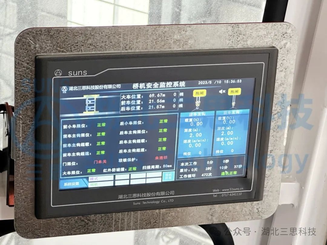 系統(tǒng)實(shí)時(shí)顯示起重機(jī)的運(yùn)行狀況參數(shù),如:主副參數(shù)、整車(chē)參數(shù)、天車(chē)參數(shù)、本次工作時(shí)間、工作時(shí)間、工作次數(shù)、通訊狀況等,可以讓駕駛員全方位掌握橋機(jī)的實(shí)時(shí)運(yùn)行狀況,提高了操作的安全性。